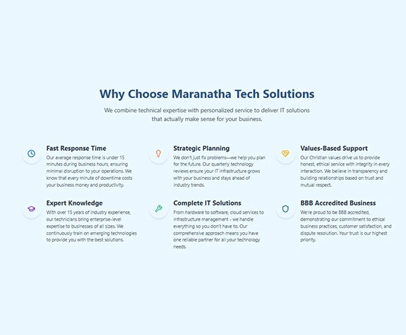 To address Maranatha Tech Solutions’ challenges, We focused on optimizing their Google Business Profile (GBP) to increase their local search visibility and improve engagement with potential clients.